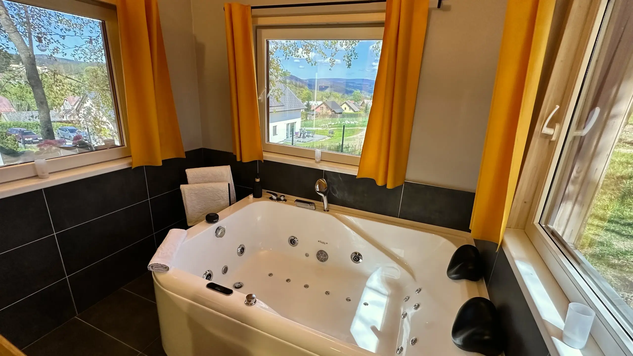- Vířivá vana s vytahovací sprchou.